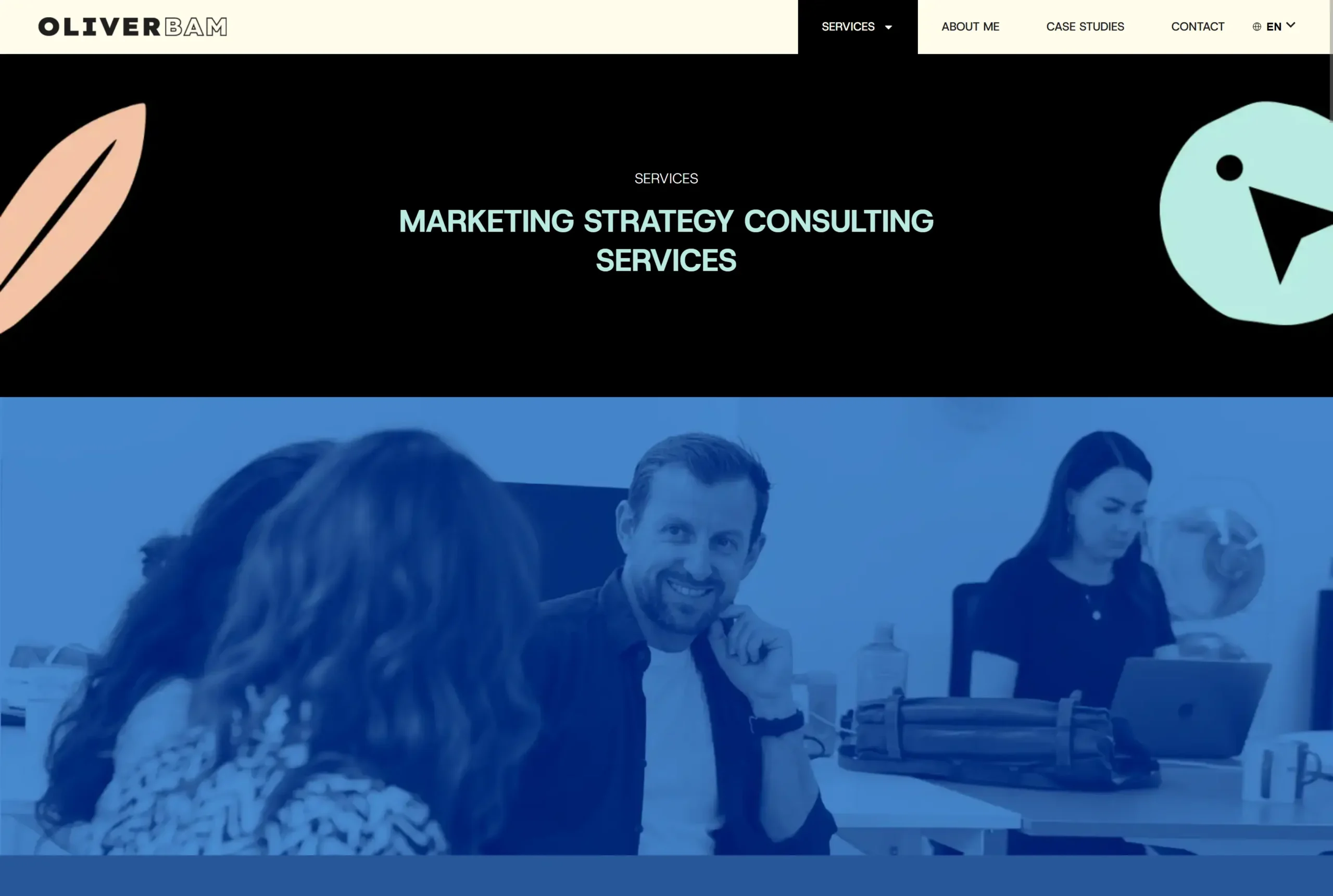 Web Corporativa para Oliver Bam, especialista en Marketing y Marca Personal, en la que se centra en su marca, sus servicios, y creación de infraestructura de entradas y noticias para optimizar e impulsar el SEO.